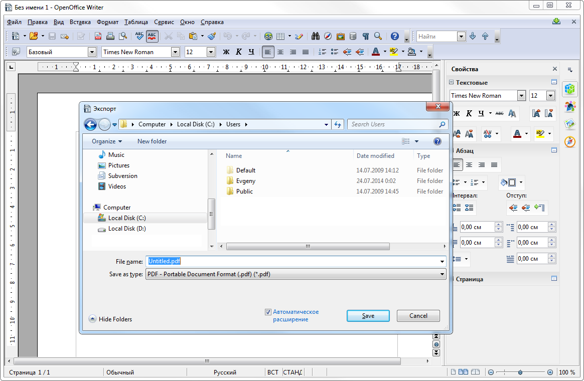 You can create a text document and export it into PDF using the freely available OpenOffice Writer application from the OpenOffice package. However, it should be pointed out that exporting a document into a non-native format often does not allow you to control all the aspects and use some PDF-related features. For example, you will not be able to edit the hierarchical structure of your PDF document, setup font embedding parameters, or choose an encryption method. Though, password protection is supported and available in PDF export options in this application.